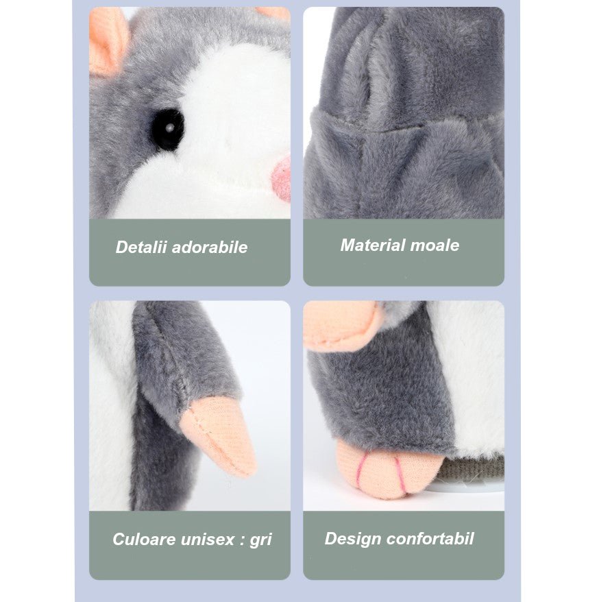 Jucarie interactiva, hamster vorbitor, bebelusi, copii, din plus, educativa, inregistreaza si reda vocea, imitator, gri