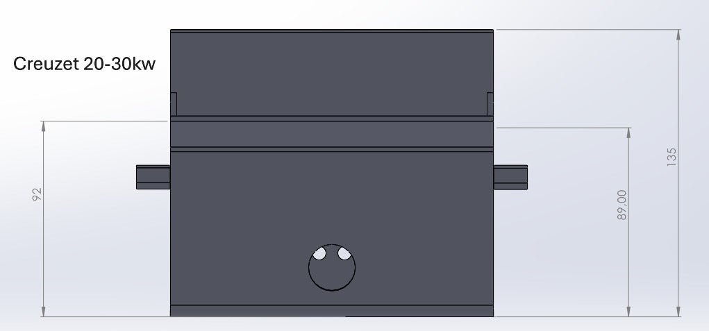 Creuzetul (focarul) este piesa în care are loc arderea peleților. Acest model este realizat din oțel carbon de 3 mm și este destinat centralelor și termoșemineelor pe peleți cu puteri între 20 kW și 40 kW.