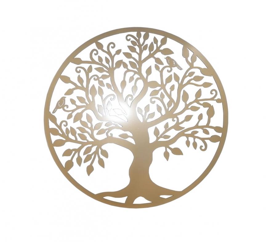 Decoratiune de perete living din metal, copacul vietii, auriu, 45x45