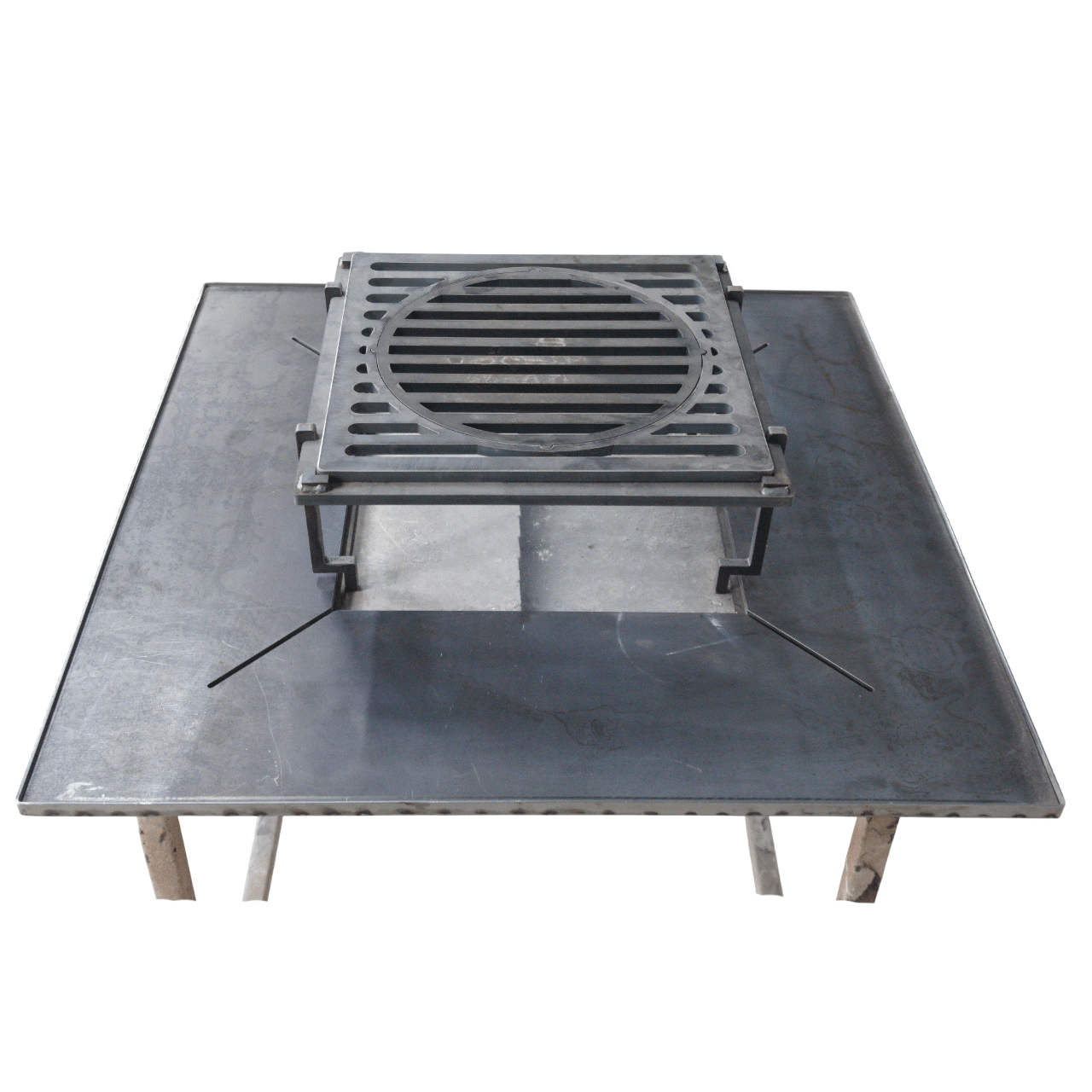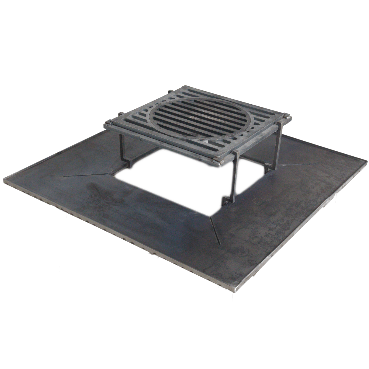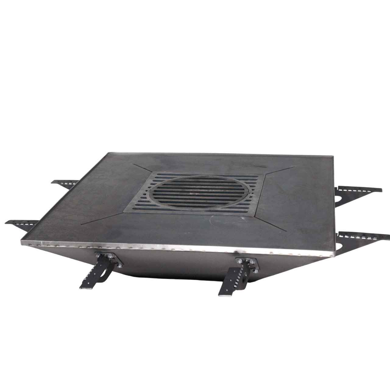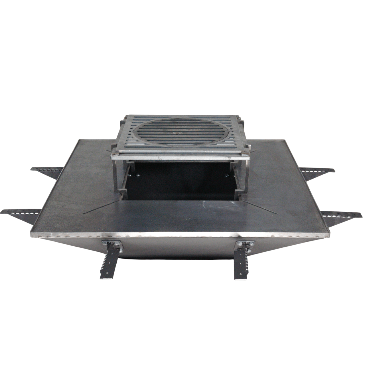 Firepit, plita gratar cu focar, plita incorporabila cu suport ceaun/disc, 75x75 cm+ grill