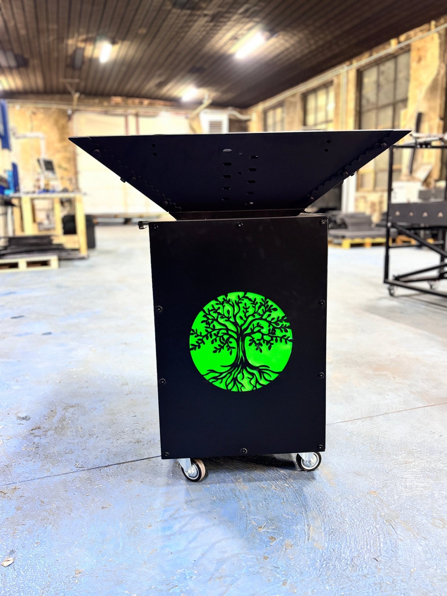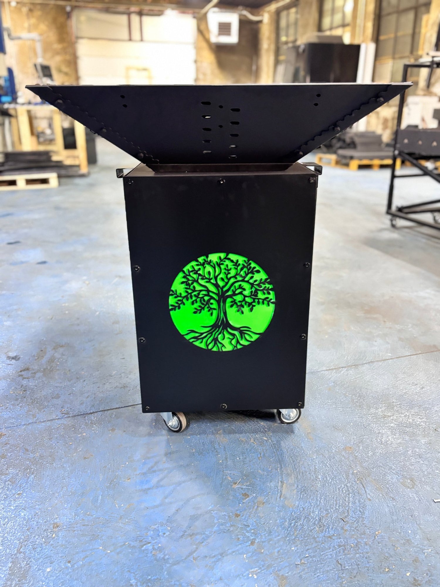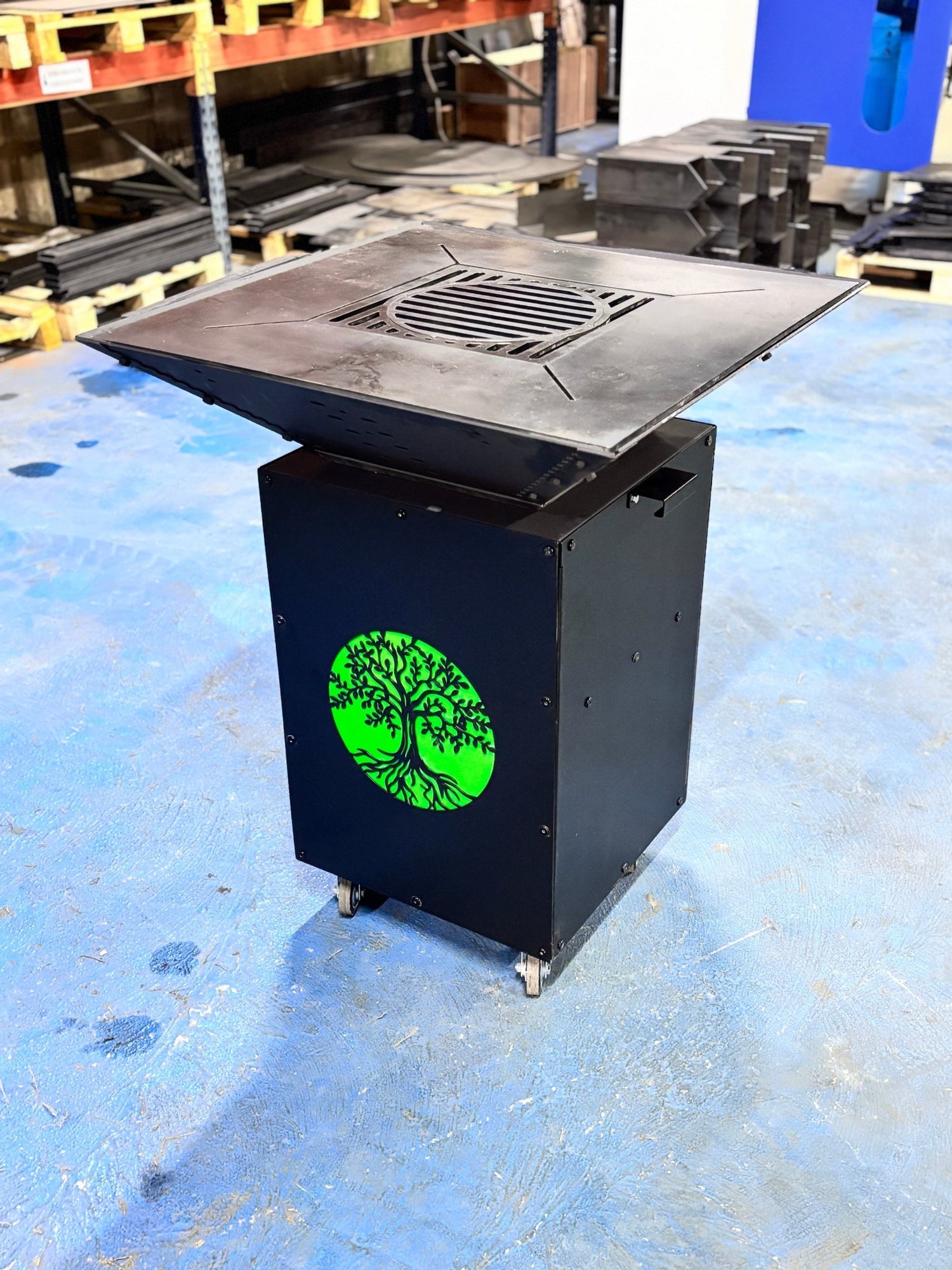 Gratar de gradina, 5 in 1 ,fire pit cu Plita 10 mm Otel , Suport Ceaun/Disc , Gratar de curte , Personalizabil , Copacul Vietii