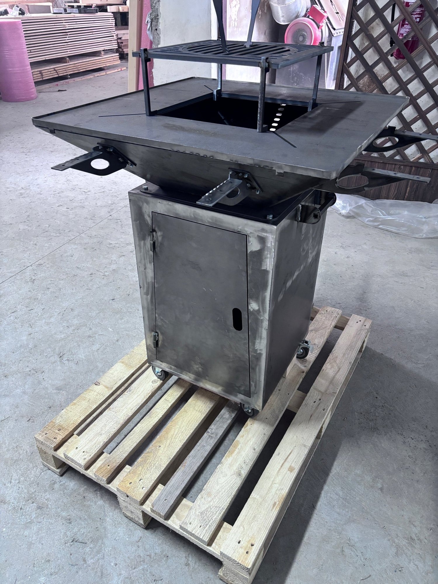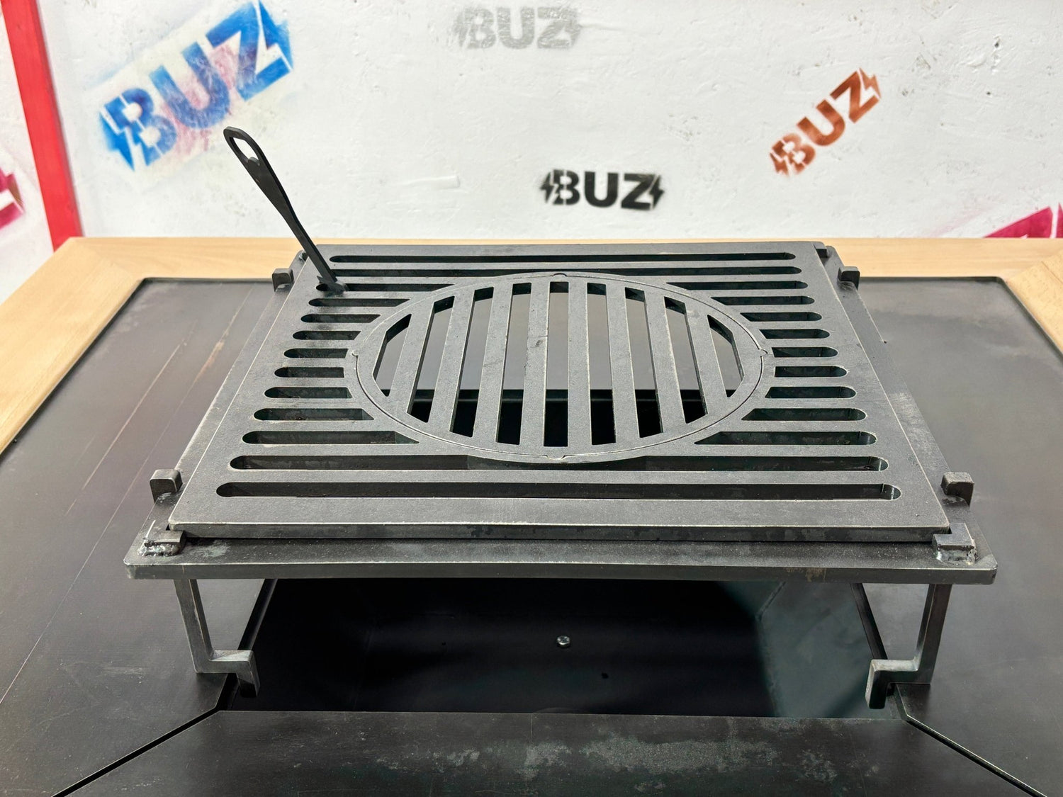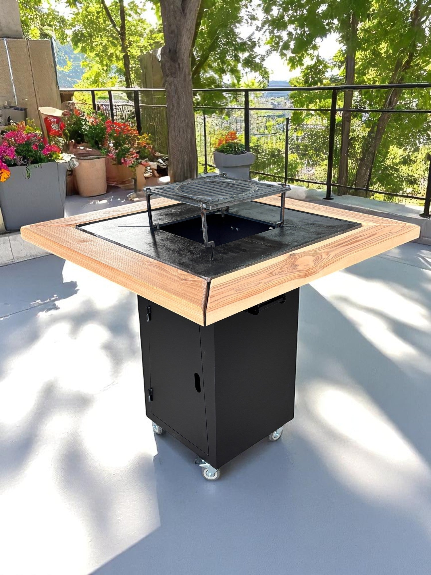 Gratar Gradina Fire Pit cu plita 95x 95 cm din otel 10 mm, FARA blat de lemn 95 x 95 m