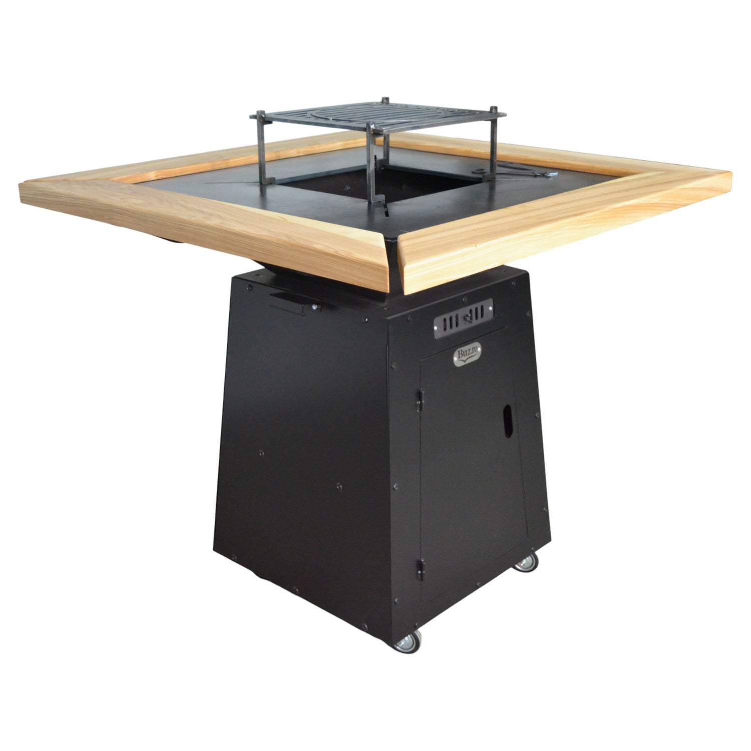 Gratar Gradina si Curte | Plita Otel 75x75 cm | Mobil pe Roti | Inaltator Ceaun Inclus