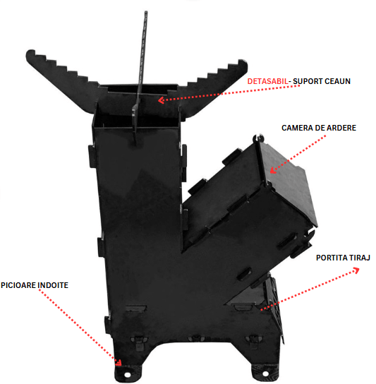 Soba Camping Lemne | Otel Carbon | Portabila | Vopsita 65cm