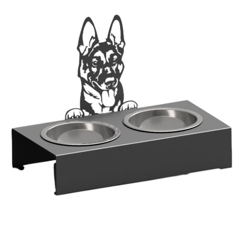 Bol pentru mancare si apa catei , din inox cu decor in forma de catel 32x25x17 cm