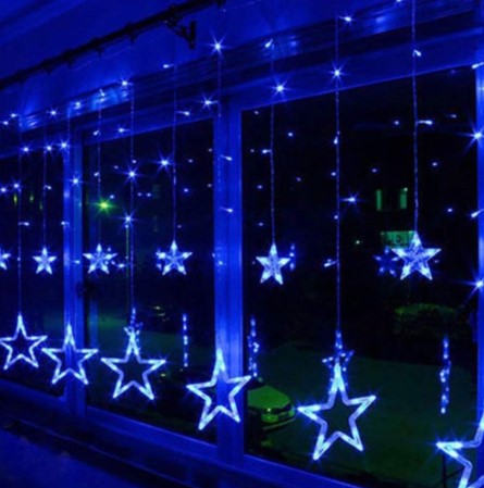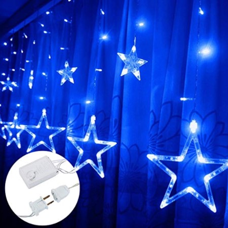 Instalatie craciun perdea luminoasa ploaie de stele albastru