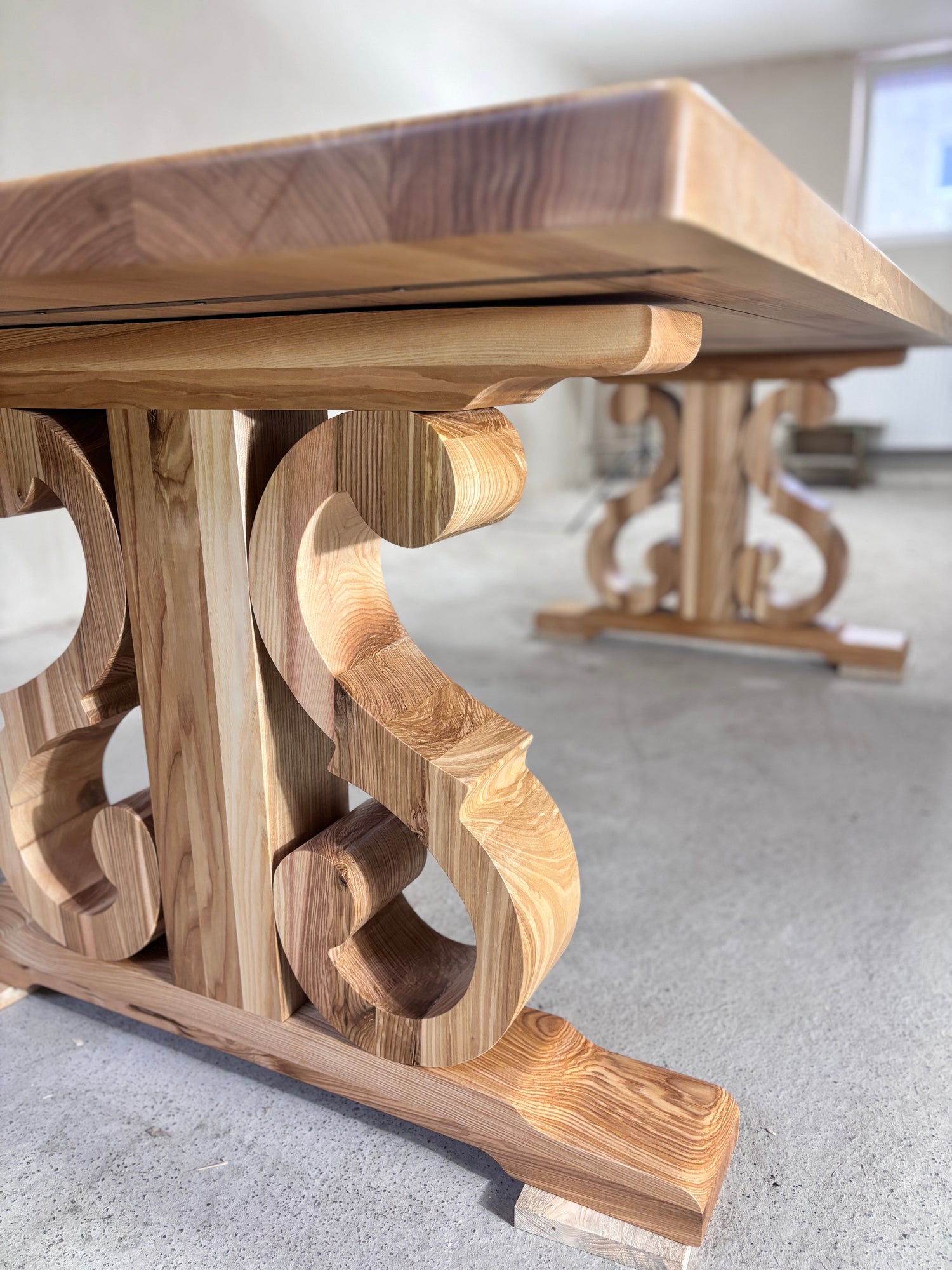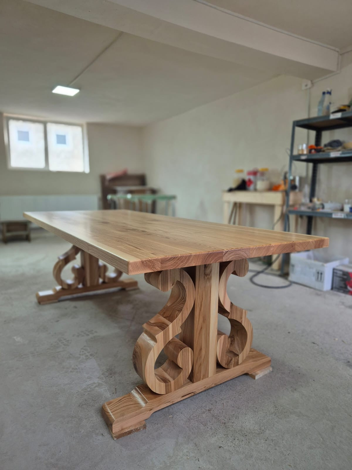- ✔️ Fabricată 100% din lemn masiv Frasin sau Tei la alegere : Atât blatul, cât și cadrul sunt construite din lemn solid, oferind durabilitate și rezistență în timp.