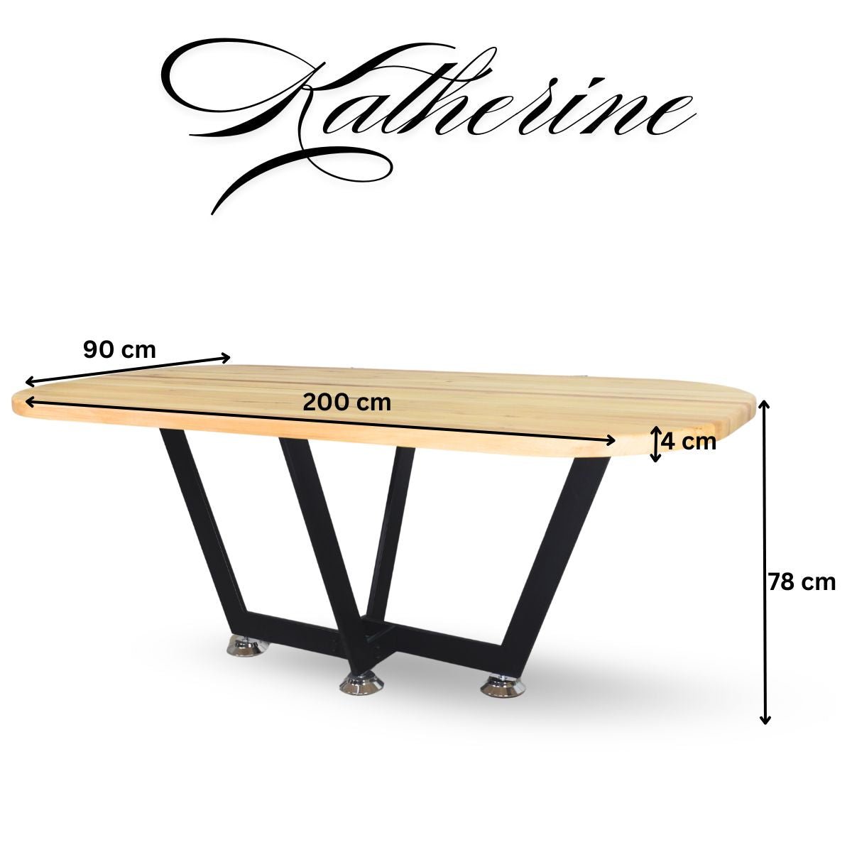 Masă din Lemn de tei cu Picioare Metalice – Katherine, 200x90x78 cm