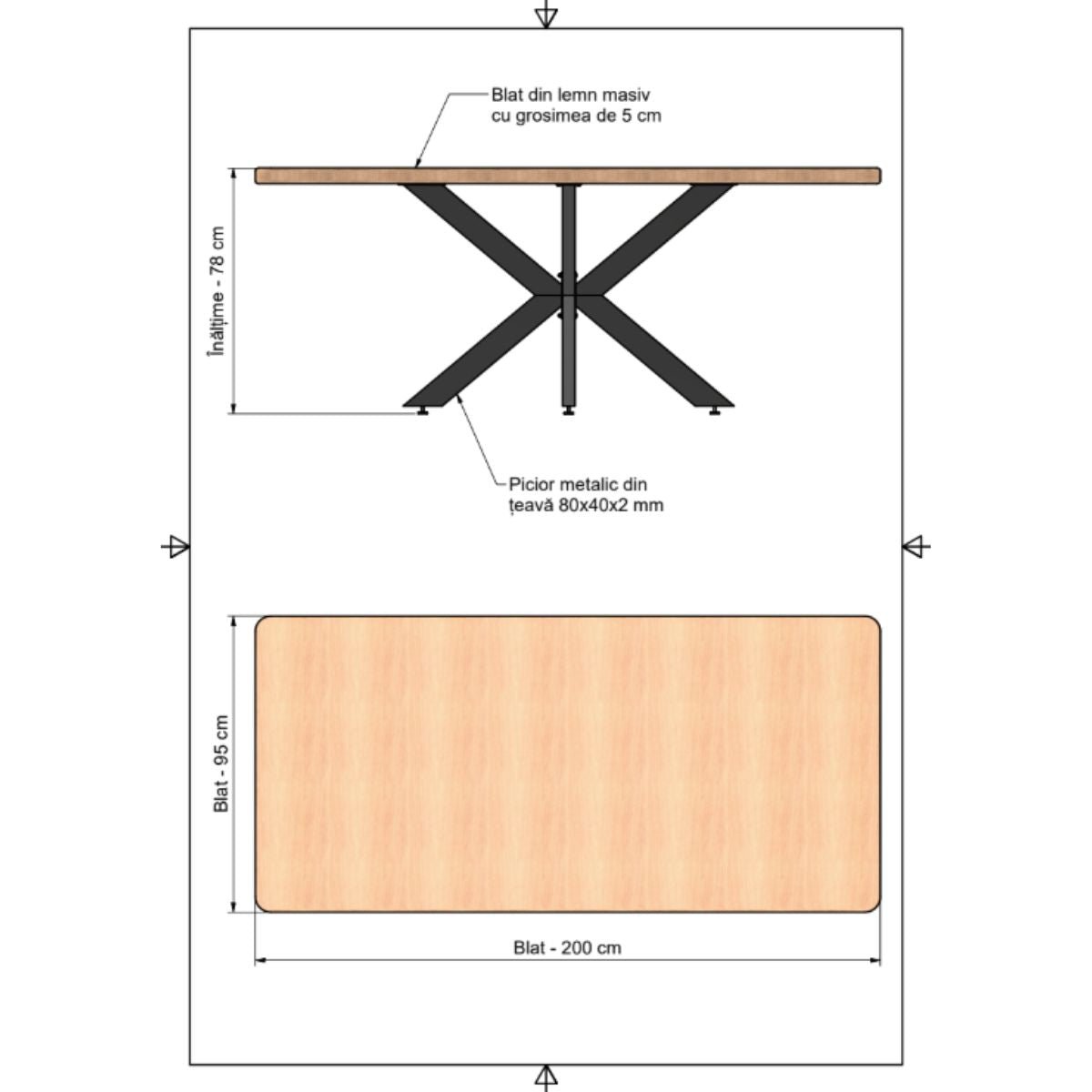 Masă din Lemn Masiv de Tei cu Picioare Metalice – Model Spider – 200x95x78 cm