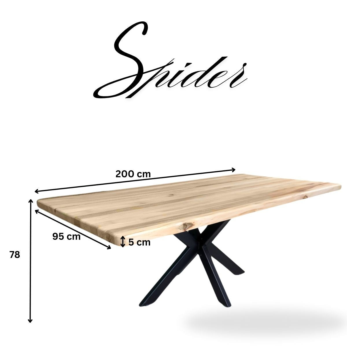Adaugă rafinament și durabilitate spațiului tău cu masa Spider – o piesă statement realizată din lemn masiv de tei și susținută de un cadru metalic solid în formă de păianjen. Ideală pentru zone de dining, birouri moderne sau restaurante premium, această masă îmbină perfect estetica industrială cu naturalețea lemnului.