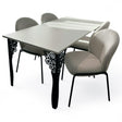 • 🪑4 scaune incluse: tapițate cu husa plus de calitate, cu cadru metalic solid – confortabile și rezistente în timp.