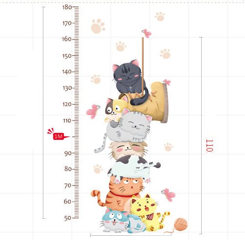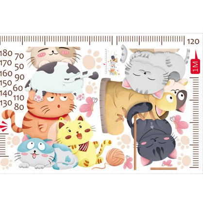 Sticker autocolant de perete pentru camera copilului cu pisicute, rezistent la zgarieturi si apa, detasabil si reutilizabil, 110 cm