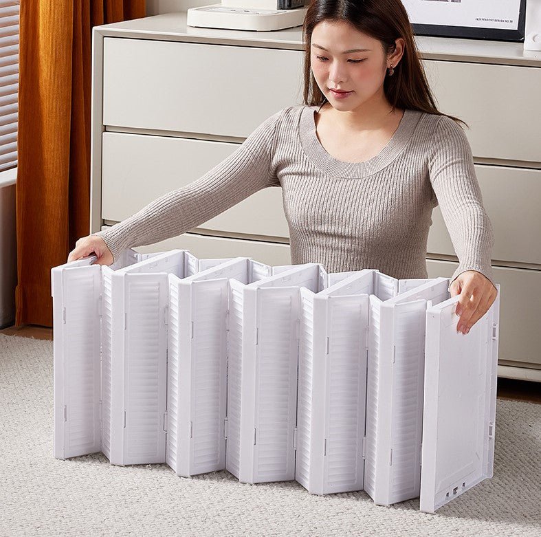 Pantofar Pliabil Alb – 6 Compartimente, Compact și Rezistent, 105x25.5 cm