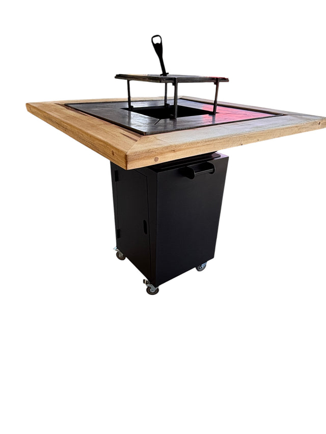 Gratar Gradina Fire Pit cu plita 95x 95 cm din otel 10 mm + blat de lemn 1.3 x 1.3 m Frasin sau Brad - Vopsit Negru / Frasin - estata Tare Comanda este în așteptare și va fi expediată de îndată ce este din nou în stoc.