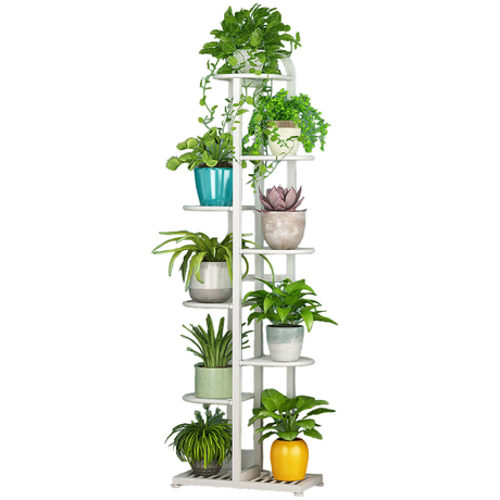 Suport flori metalic alb cu 7 etajere – Suport plante cu ghiveci, design elegant, 125x44.5x22 cm