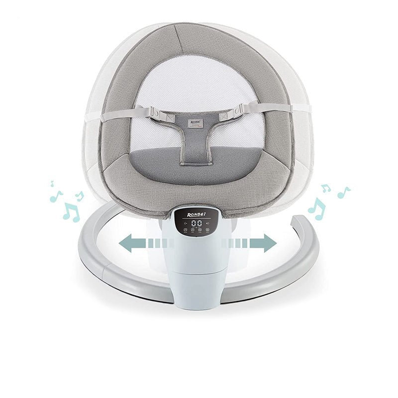 Balansoar bebelusi, leagan copii, electric, portabil, cu conectare la priza, telecomanda, timer si muzica, gri