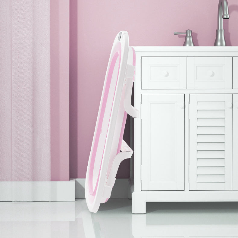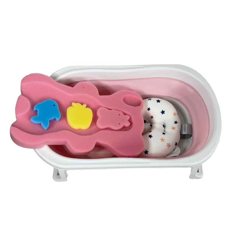 Cadita de baie pliabila, cu pernuta si bureti, termometru, pliere rapida, usor de utilizat, picioare antiderapante, varsta 0-3 ani, 25l, roz, buz