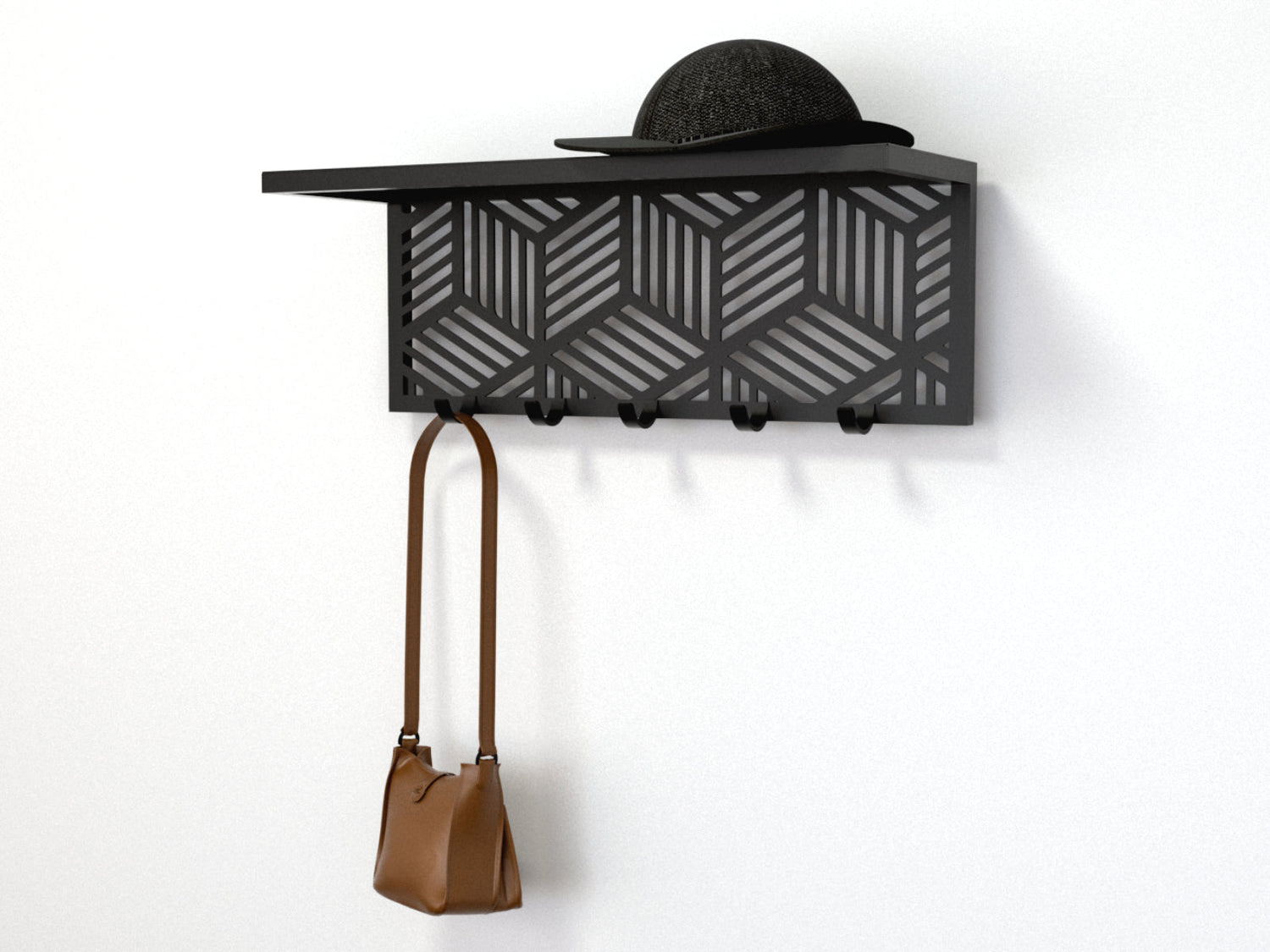 Cuier hol/baie/sufragerie , de Perete Metalic Negru cu etajera– Modern