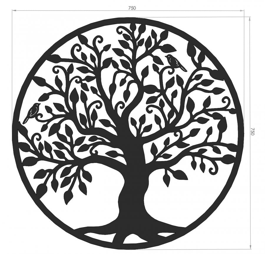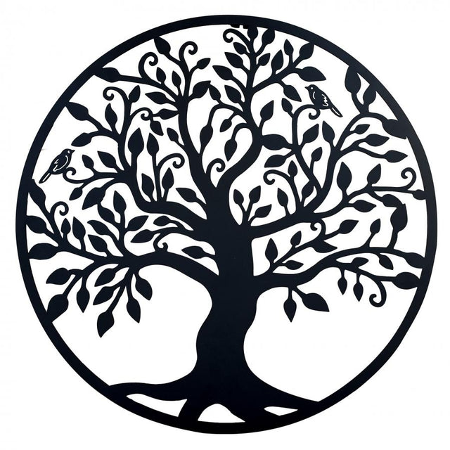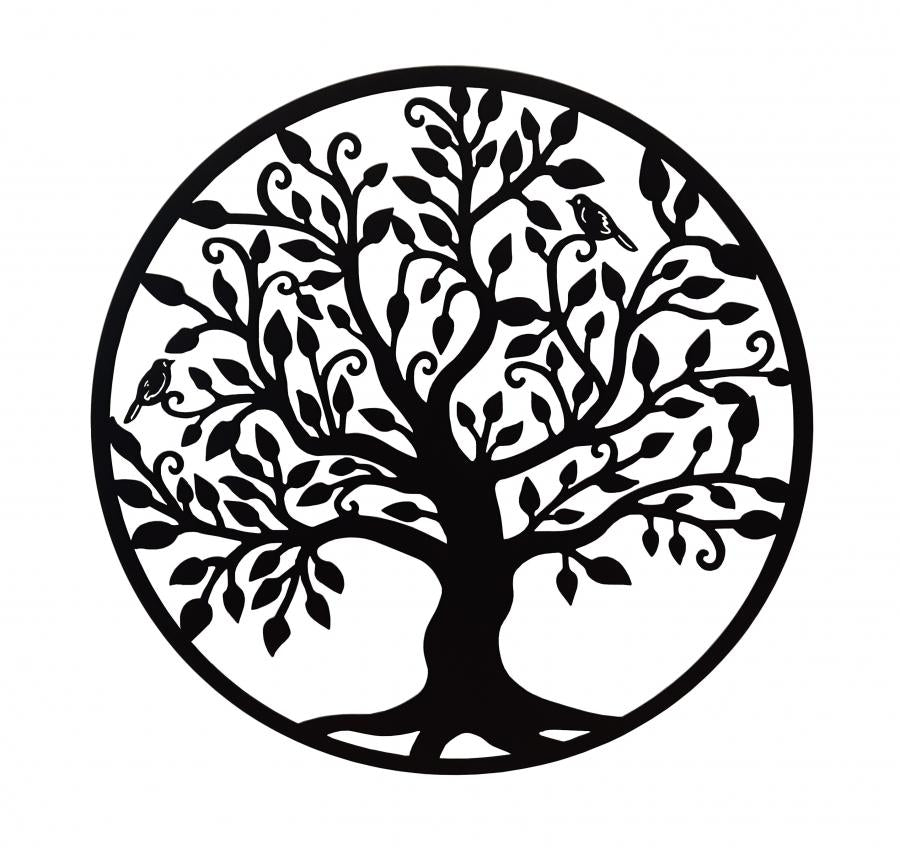 Decoratiune de perete living din metal, copacul vietii, negru, 75x75
