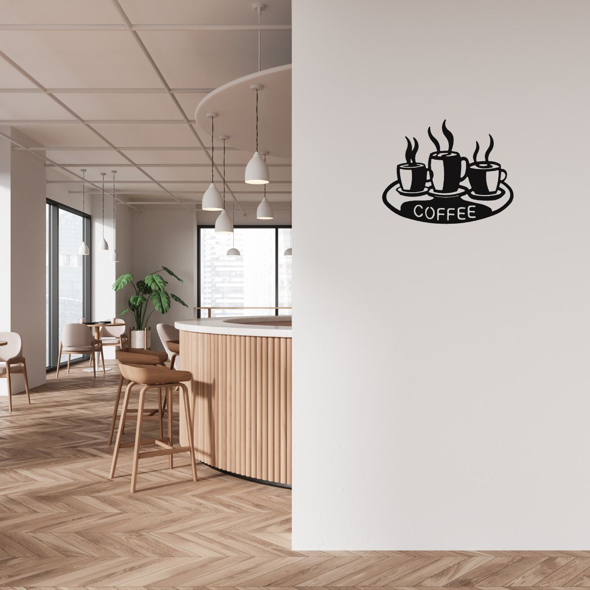 Decoratiune perete metal, model coffee, 50x40 cm, negru