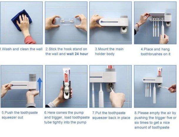 Dispozitiv inovator și multifuncțional, conceput pentru a oferi igienă și organizare în baia dumneavoastră. Automatizează dozarea pastei de dinți, organizează periuțele și utilizează tehnologia UV pentru a le steriliza eficient, eliminând bacteriile și germenii.