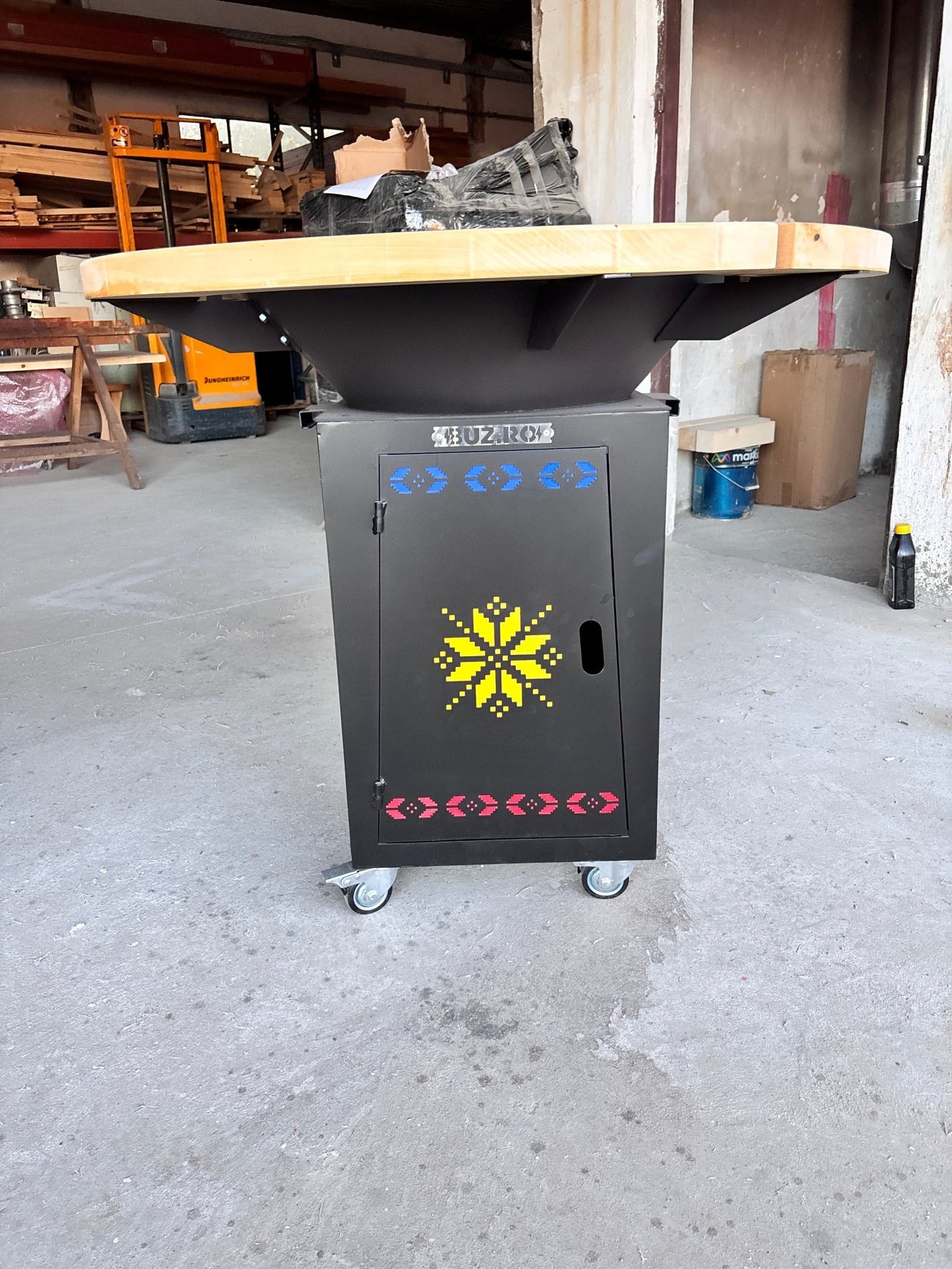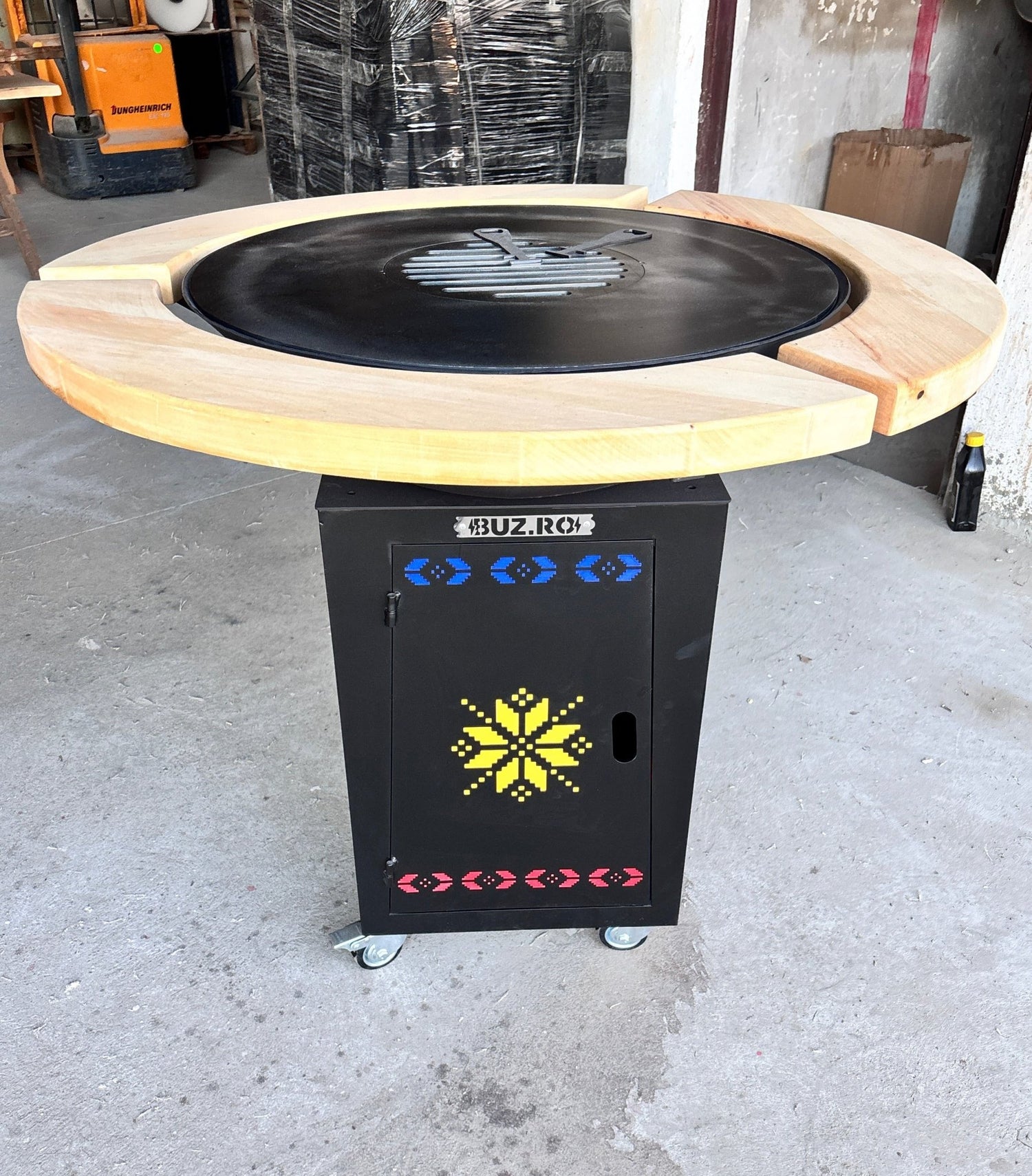 Gratar Gradina Rotund plita 10 mm Fire Pit 73 cm din fier pe lemne, pentru terasa, blat LEMN SI MOTIVE TRADITIONALE