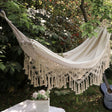Hamac Dublu din Bumbac cu Franjuri, Săculeț de Transport și Frânghii – 200x150 cm