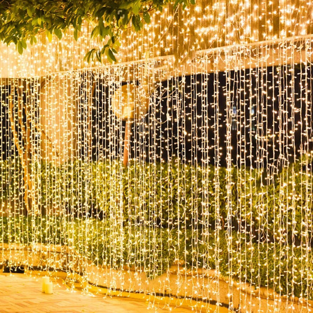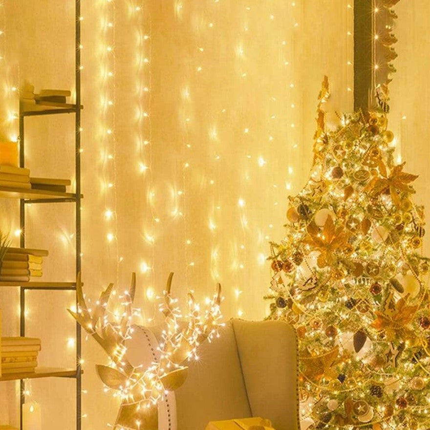 Instalatie luminoasa pentru Craciun, perdea, 4 metri lungime, cu 8 jocuri de lumini, alb cald