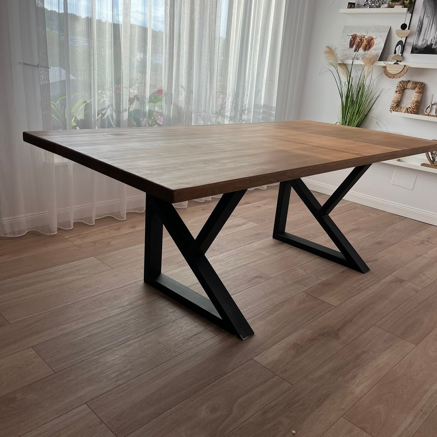 Masa lemn de tei, cu picioare metal, 200x95x78 cm, Liz