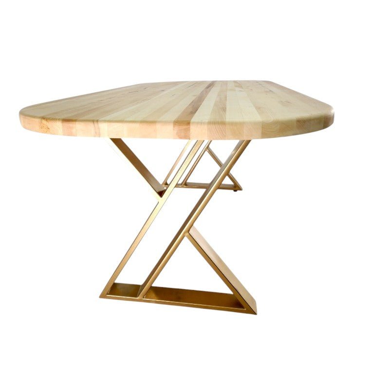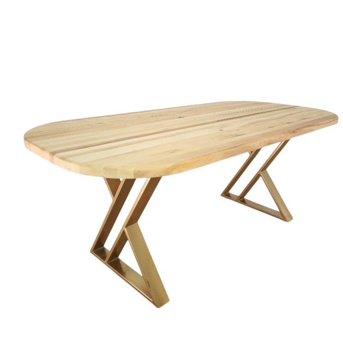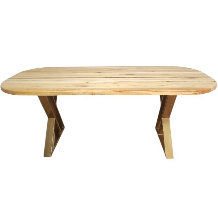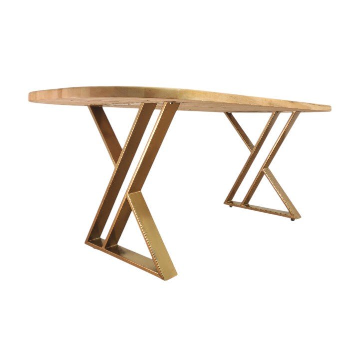 Masa lemn tei, cu picioare masa metal, Daphne, aurii, 200x90x77 cm