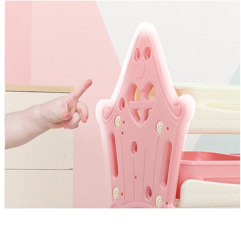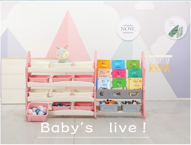 Organizatorul pentru jucarii si carti este solutia perfecta pentru a mentine ordinea si a infrumuseta spatiul de joaca al copilului. Cu multiple rafturi si cosuri de depozitare, acest organizator ofera un spatiu generos pentru a pastra jucariile, cartile si alte accesorii ale copilului intr-un mod organizat si accesibil. Caracteristici principale:- Material durabil: Fabricat din plastic ABS rezistent si durabil, organizatorul este conceput pentru a rezista uzurii si a oferi o utilizare indelungata.- Design practic: Cu 4 rafturi si 14 cosulete de depozitare, acest organizator ofera o solutie eficienta de organizare pentru jucarii, carti, puzzle-uri si alte obiecte ale copilului.- Cos baschet inclus: Cosul de baschet inclus adauga o nota de distractie si interactivitate, oferind un loc de depozitare suplimentar pentru mingi si alte jucarii de dimensiuni mici.- Dimensiuni generoase: Cu dimensiunile de 124cm x 36cm x 72cm, acest organizator ofera un spatiu amplu pentru a gazdui o varietate de jucarii si carti, fara a ocupa prea mult spatiu in camera.- Montare usoara: Organizatorul vine cu instructiuni de asamblare clara si usor de urmarit, permitând o montare rapida si fara probleme.- Design atragator: Designul modern si atragator al organizatorului il transforma intr-o piesa de mobilier functionala si decorativa in camera copilului.- Utilizare versatila: Organizatorul poate fi folosit nu doar in camera de joaca a copilului, ci si in dormitor, living sau alte spatii unde este necesara organizarea jucariilor si a cartilor.