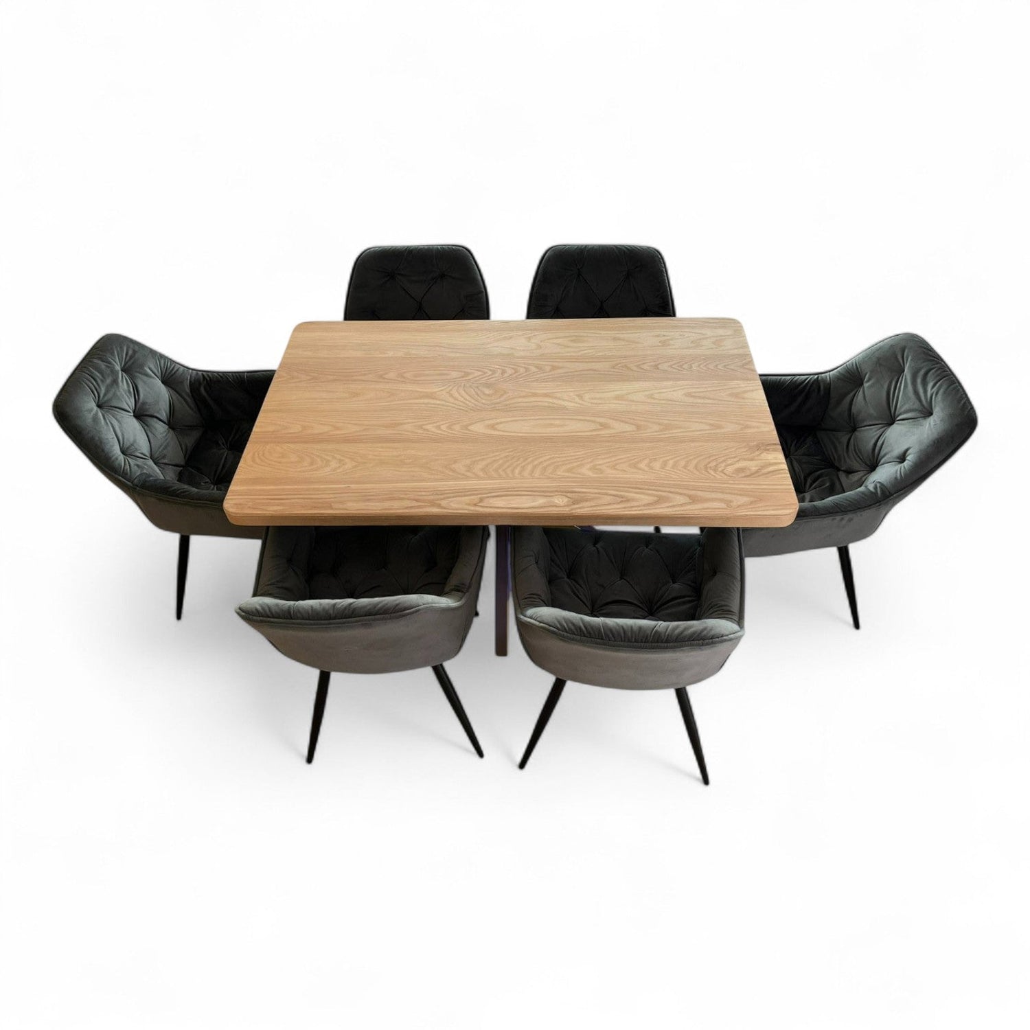 Set masa cu scaune bucatarie, dining, living, sufragerie, blat din lemn cu picioare metalice, scaune husa catifea gri, 4 persoane, Lavinia