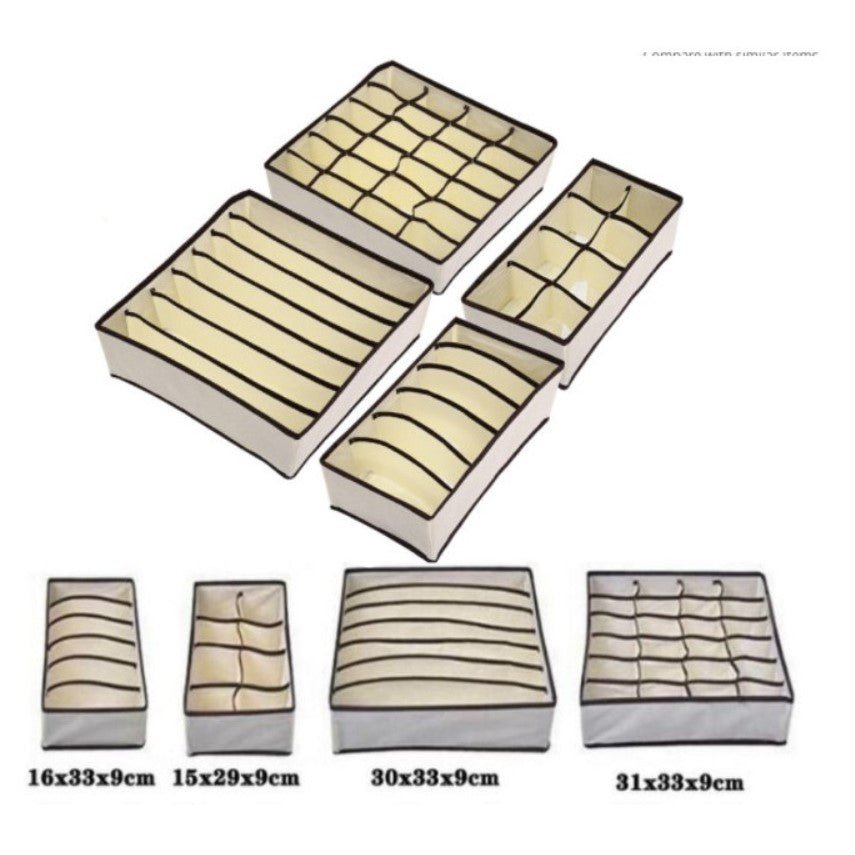 Set organizatoare si cutie depozitare pentru lenjerie, sosete, 4 piese , 38 compartimente PP, crem