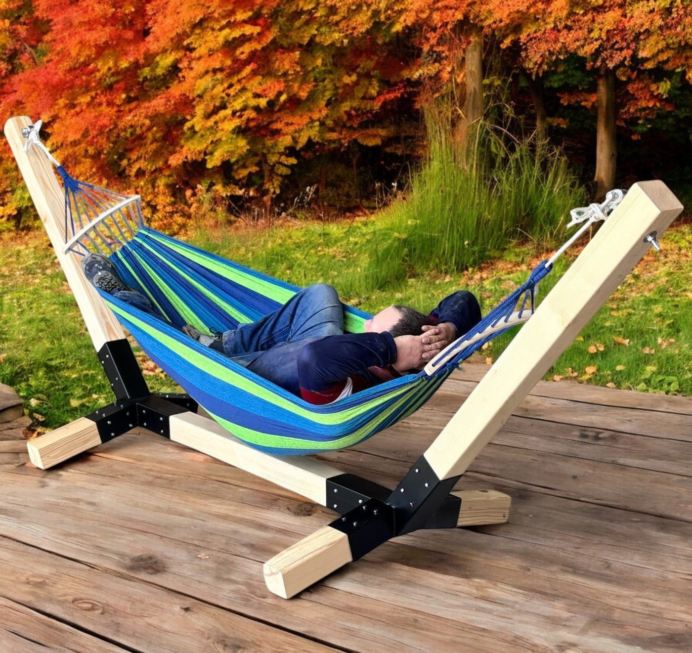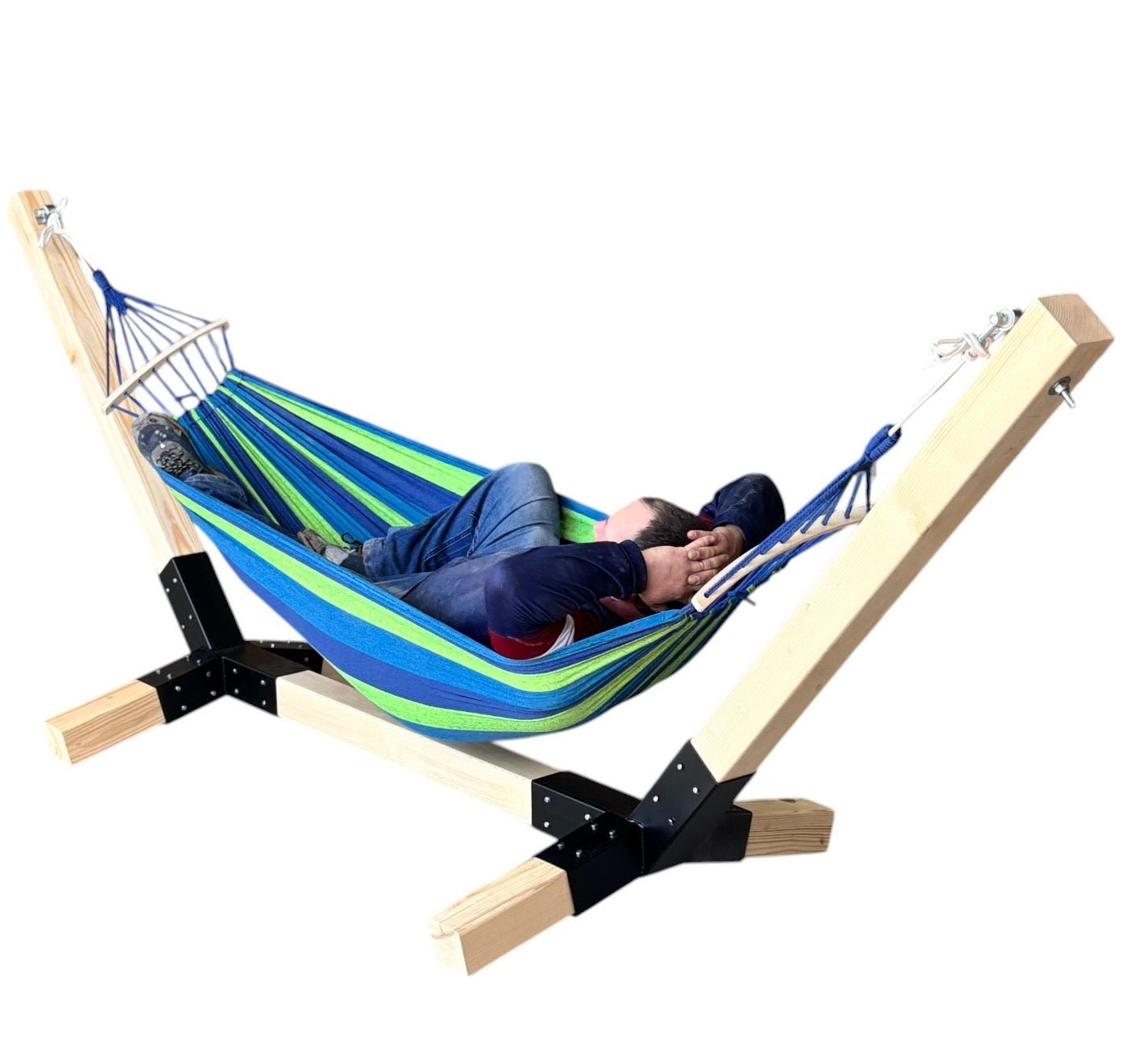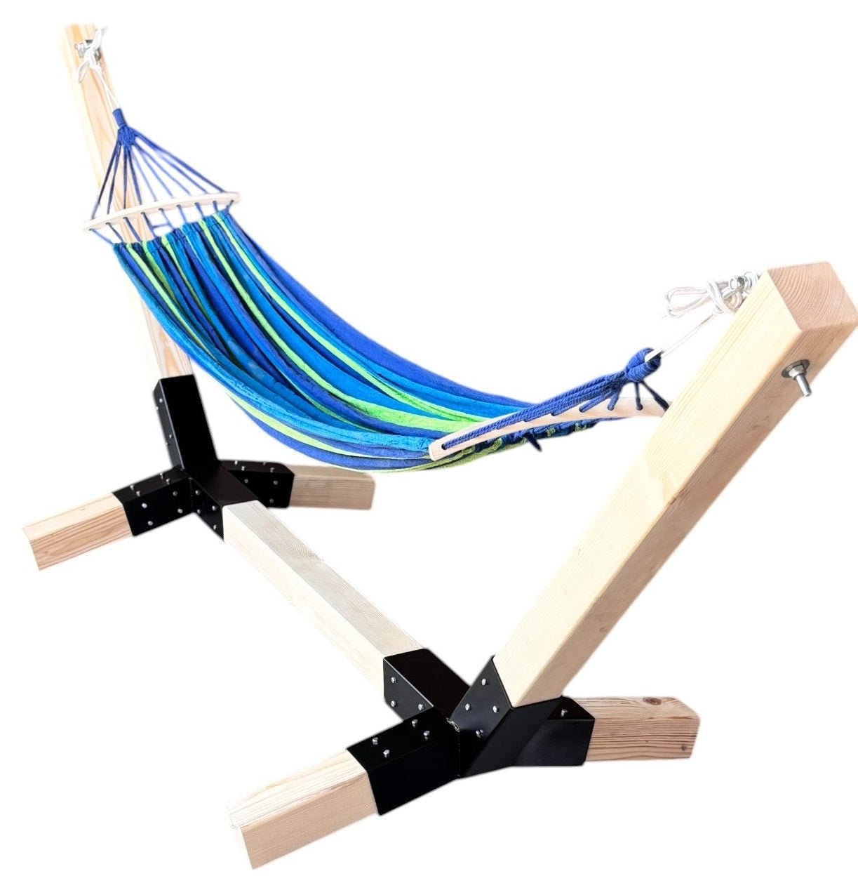 Suport hamac din lemn de brad cu conectori metalici – 330x135 cm
